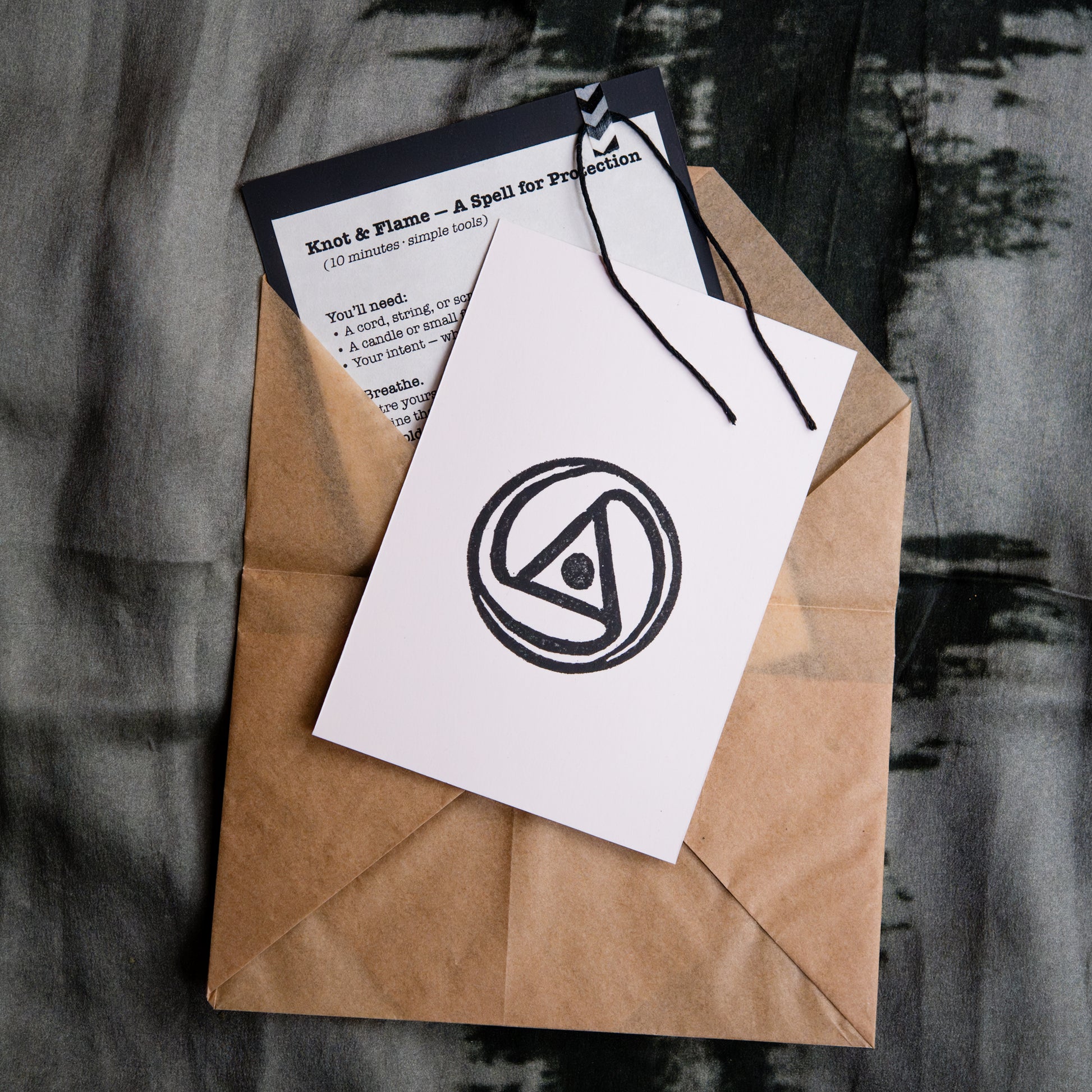 - A handmade knot-magic sigil card for your altar or pocket